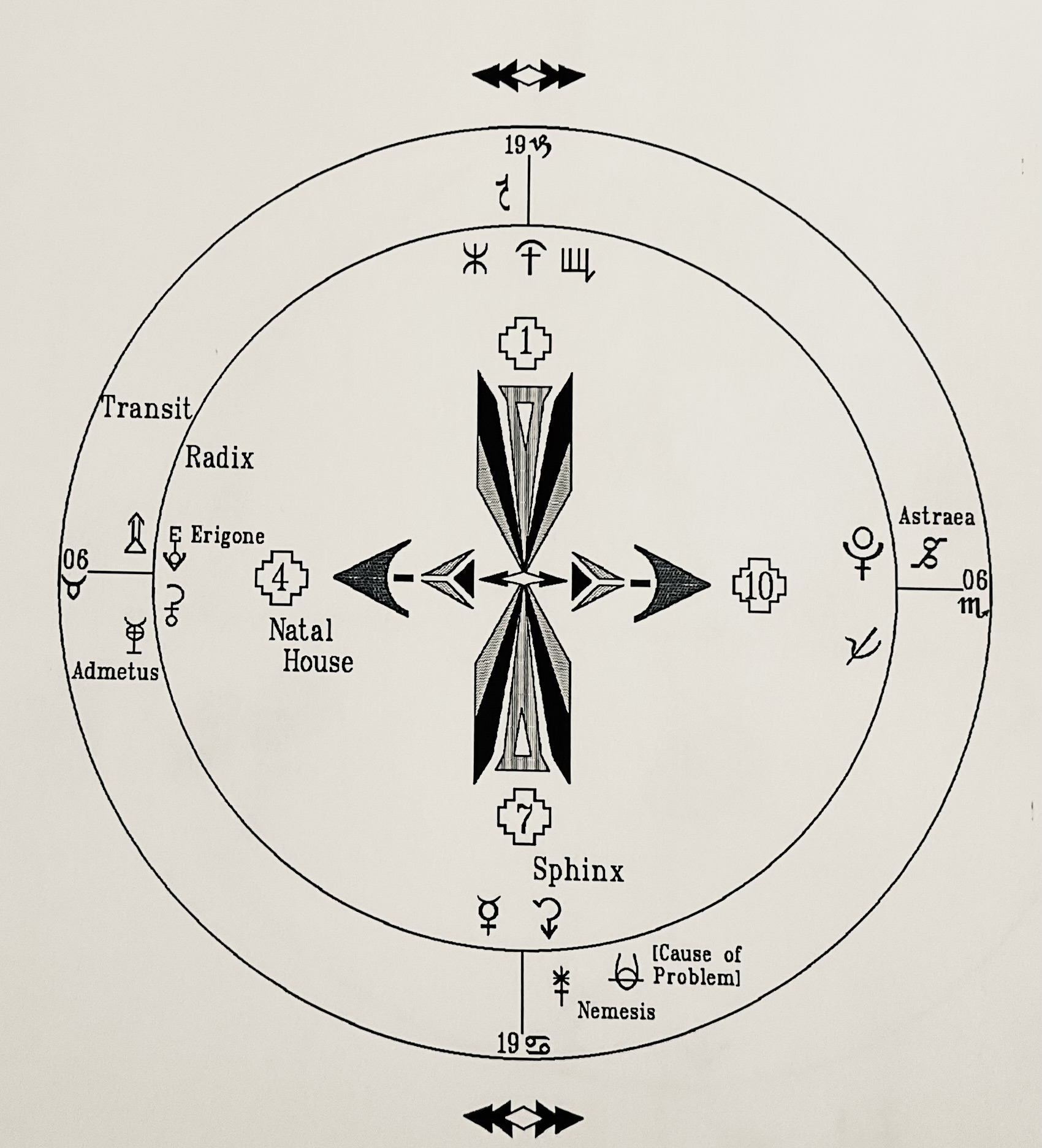 So you will go around to each angle in this same way; Mercury-Sphinx is asking questions (about the past—the 4th House— and others—7th Radix) as they try to understand (Nemesis) what or who caused problems. When you discuss the Descendant, you have the Psyche-Pluto and the fact that Astraea is indicating that there is slow or actually no recovery (and that’s related to the Erigone and the reaction of Psyche-Pluto.) See how this works?